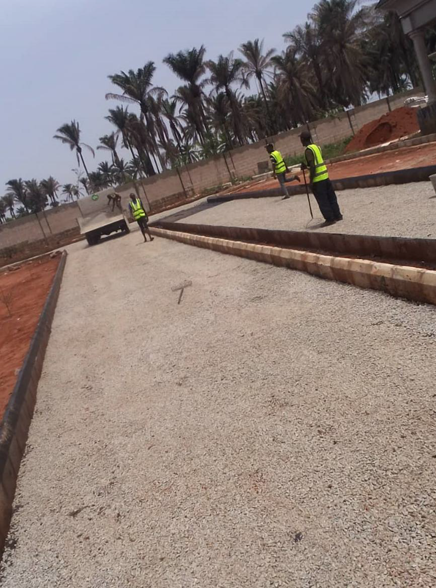 The site location is situated at Irrua, Edo State. The project involves the construction and placement of surface dressing within the client lodge.