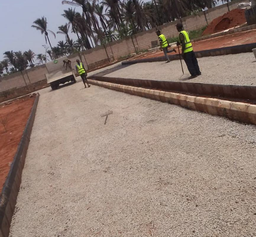 The site location is situated at Irrua, Edo State. The project involves the construction and placement of surface dressing within the client lodge.